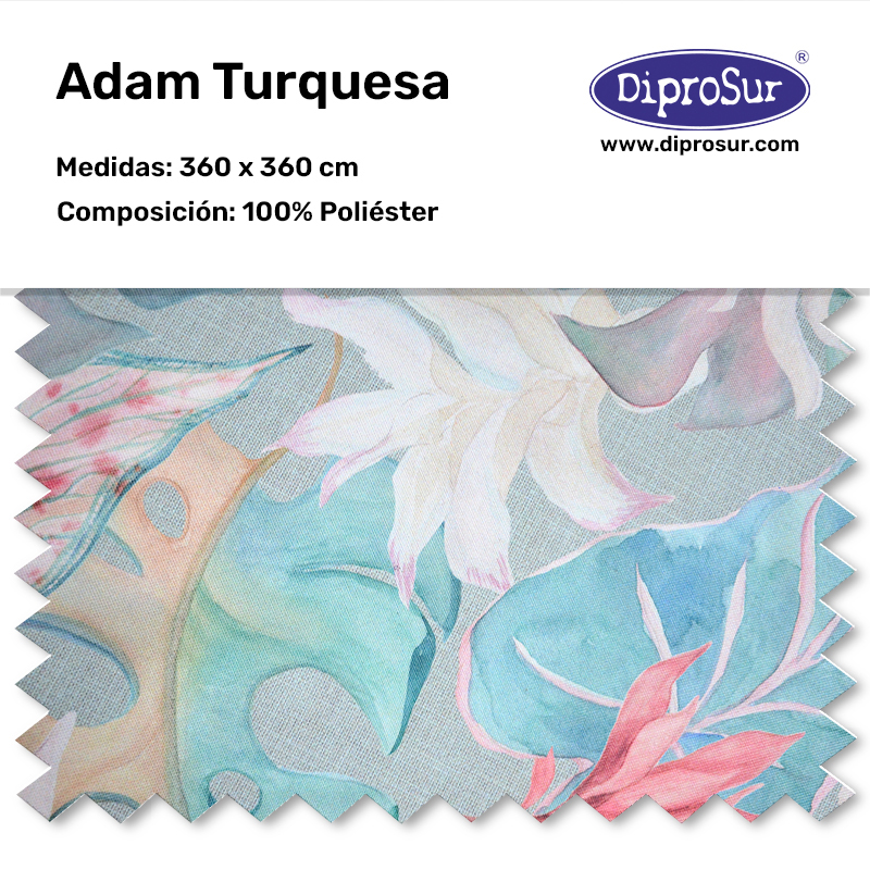 Nuestros Manteles Adam Turquesa presentan un encantador estampado floral en tonos turquesas, blanco y rosa, añadiendo un toque de frescura y vitalidad a cualquier evento. Con medidas de 3.60×3.60, este mantel es la elección perfecta para bodas, fiestas y celebraciones especiales.